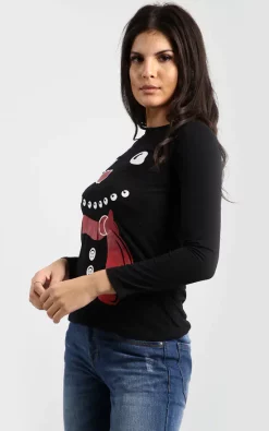Discount 😍 Klass Tie Front Paisley Print Jersey Top Black/Red ⌛