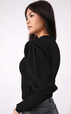 Best reviews of 🧨 Chekani Balloon Sleeve Knit Top In Black | Nina 🎉