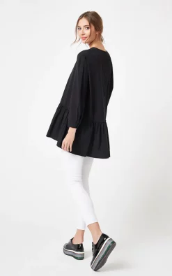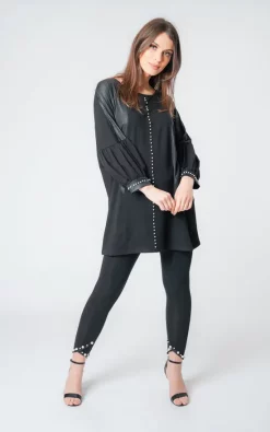 Best reviews of 😍 LOES House Oversized Pearl Embellished Tunic Top With Puff Sleeves In Black 🧨