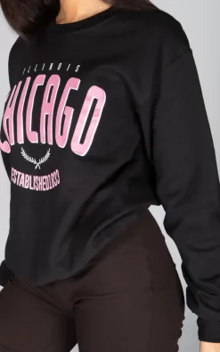 Best Sale ❤️ JustYourOutfit Black Chicago Oversized Sweatshirt 🌟