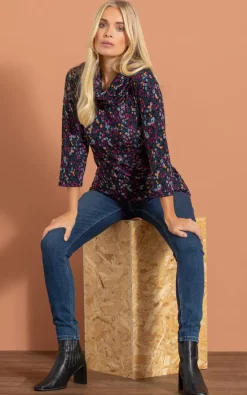 Best reviews of 😉 Klass Floral Print Cowl Neck Knit Top Black/Pink 👏