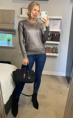 Brand new 🥰 CY Boutique Long Sleeve Knitted Top In Metallic Silver 😀