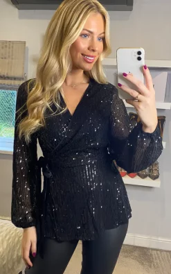 Promo 😍 HOXTON GAL Oversized Tie Neck Off Shoulder Top In Black ✨