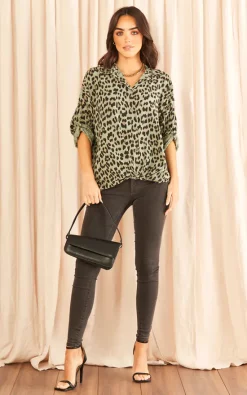Top 10 ⌛ Blue Vanilla Harriet Large Leopard Print 👕 Shirt In Khaki 😉