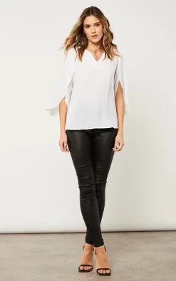 Wholesale 🧨 HOXTON GAL Oversized V Neck Detailed Split Sleeves Blouse In White 💯