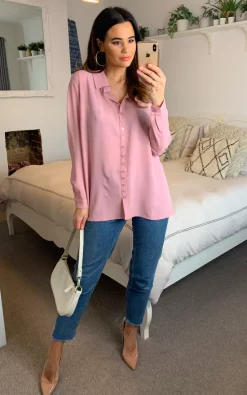 Cheapest ⭐ HOXTON GAL Button Details Relaxed Crepe 👕 Shirt In Pink 👍