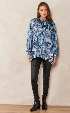 Discount ❤️ Jenerique Oversize Bowl Neck Blouse In Blue Abstract Print 👏
