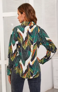 Promo ⭐ KURT MULLER Giraffe Print Pleated High Neck Blouse In Khaki ❤️