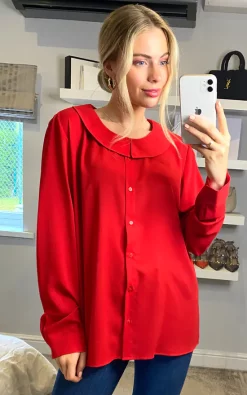 Outlet 🧨 HOXTON GAL Oversized Tie Detailed 👕 Shirt Tunic With Long Sleeves In Burgundy 🔥
