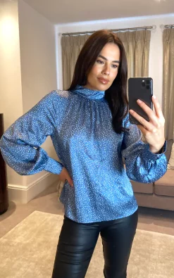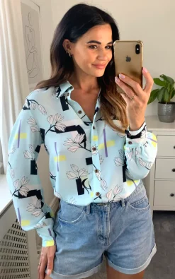 Top 10 🤩 D.Anna Multicolour Print Long Sleeves Collared 👚 Shirt In Blue 👏