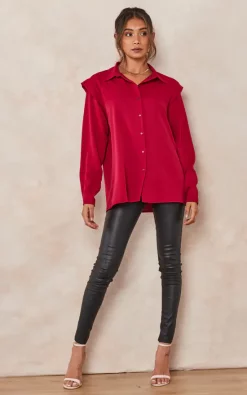 Top 10 🔥 HOXTON GAL Oversized Shoulder Detailed Long Sleeves 👕 Shirt In Burgundy ❤️
