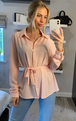 Top 10 ✨ HOXTON GAL Oversized Crepe 👕 Shirt With Belt In Pink 🎉