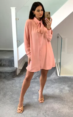 Top 10 😍 HOXTON GAL Oversized Tie Detailed Tunic 👕 Shirt With Long Sleeves In Pink 🛒