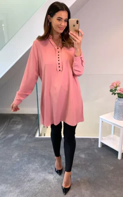 Wholesale ✔️ HOXTON GAL Tunic 👕 Shirt With Button Details In Pink 🎁