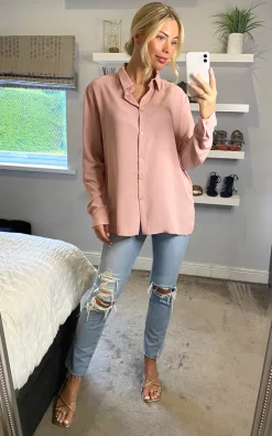 Best Sale 😀 HOXTON GAL Long Sleeves Relaxed Fit 👕 Shirt In Pink 👍