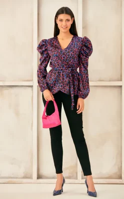 Brand new 🔔 Jenerique Long Sleeve Wrap Satin Top In Pink/Blue Abstract Animal Print 👏