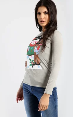 Flash Sale ⭐ Oops Fashion Jessica 🎅 Christmas Long Sleeve Tshirt In Grey 💯