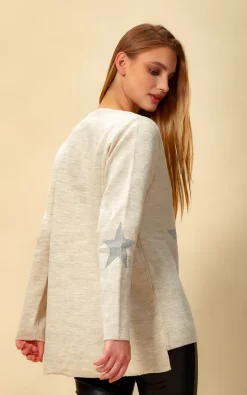 Best deal 💯 HOXTON GAL Oversized Long Sleeves Star Top With V Neck In Cream ⭐