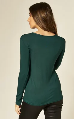 The Basic Long Sleeve Top In Green is made from the soft viscose blend and features a round neckline, long sleeves and fitted cut.