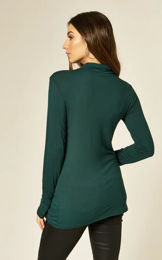 The Long Sleeve Turtleneck Top in Green is made from a soft viscose blend and features a turtleneck design, long sleeves and fitted cut.