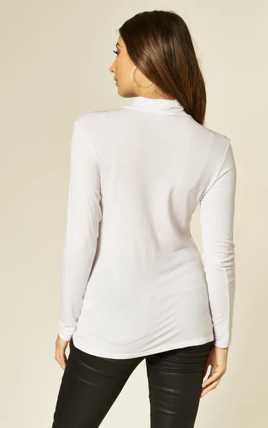 The Long Sleeve Turtleneck Top in Ivory is made from a soft viscose blend and features a turtleneck design, long sleeves and fitted cut.