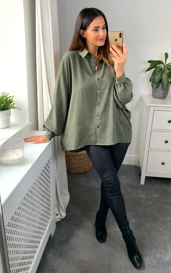 Cut from a fluid textured fabric to a flattering oversized shape, this weekend shirt is comfortable and stylish. Great with denims, we’ll wear ours layered under oversized knitwear.