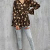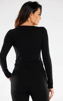 Classic cotton blouse with long sleeves and a V neckline in BASIC style.