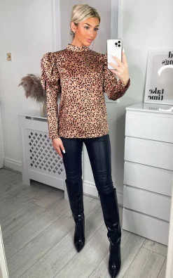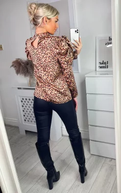Our Multi Animal Print High Neck Puff Sleeve Blouse is perfect for a ‘Jeans and nice top’ dress code. Features a high neck, trendy puff sleeves, a long cuff and a button up back. Pair with black leather pants and some sandal heels for an outfit that will wow! Get the party started in our fabulous long sleeve top, just perfect for you this winter, whatever the occasion.