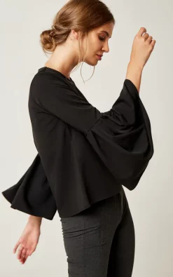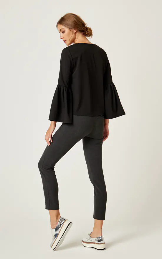 Simple blouse with buffet sleeves and a round neckline. This original blouse is loved by many women. Its phenomenon lies in the combination of simplicity and interesting details. This blouse is perfect for the office, weekend brunch, evening meetings and more.