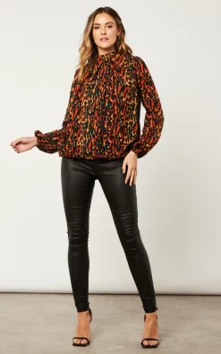 Prints are a fashion feature that will never go out of style. That is why you should add the Animal Print Blouson Top In Rust to your closet. Colourful, with a mesh layer, this high neck top has a front row seat when picking an out outfit for a night out your girlfriends! Style with white trousers and black stilettos.