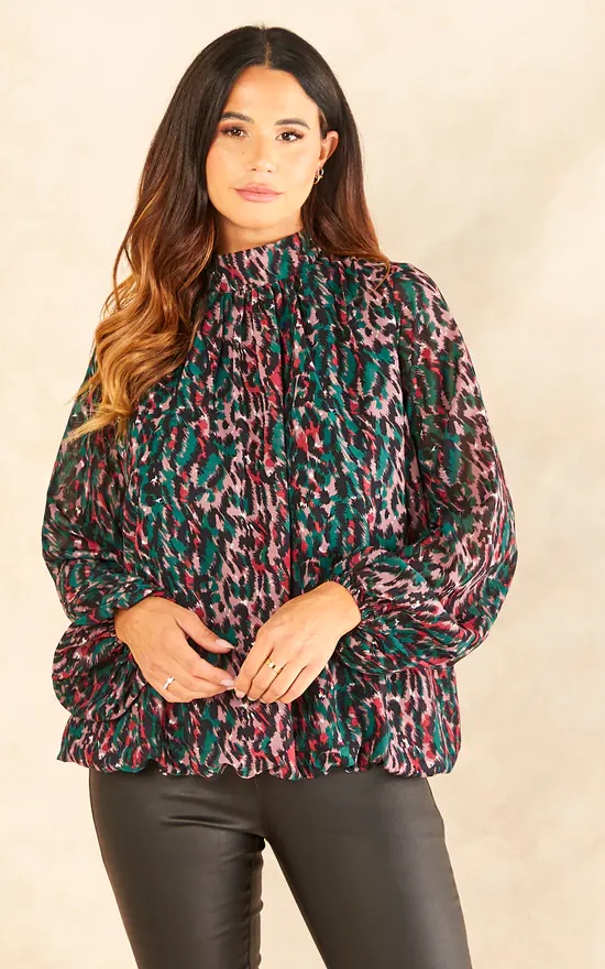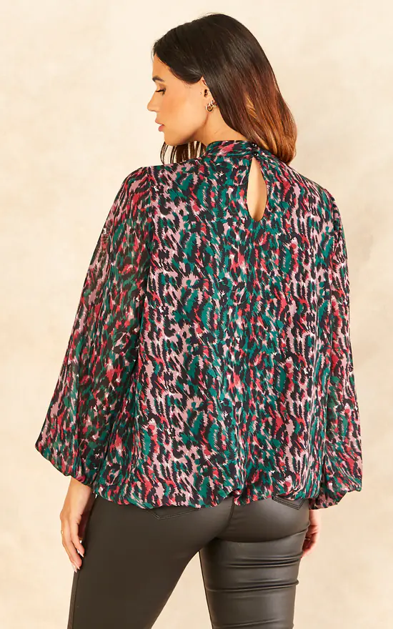 Prints are a fashion feature that will never go out of style. That is why you should add the Animal Print Blouson Top to your closet. Colourful, with a mesh layer, this high neck top has a front row seat when picking an out outfit for a night out your girlfriends! Style with white trousers and black stilettos.