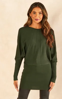 Don’t you love a top that you can look fashionable in at work, casually on a weekend, or on a fun evening out? So.Do.We! And that’s exactly why this bottle green ribbed batwing jumper with a round neckline, vertical lines and elasticated long sleeves is perfect for you. Take advantage of the ribbed design to tuck in this top into a pair of high waisted belted trousers for a professional look, or style with straight leg jeans and ankle strap sandals if you want to be more casual.