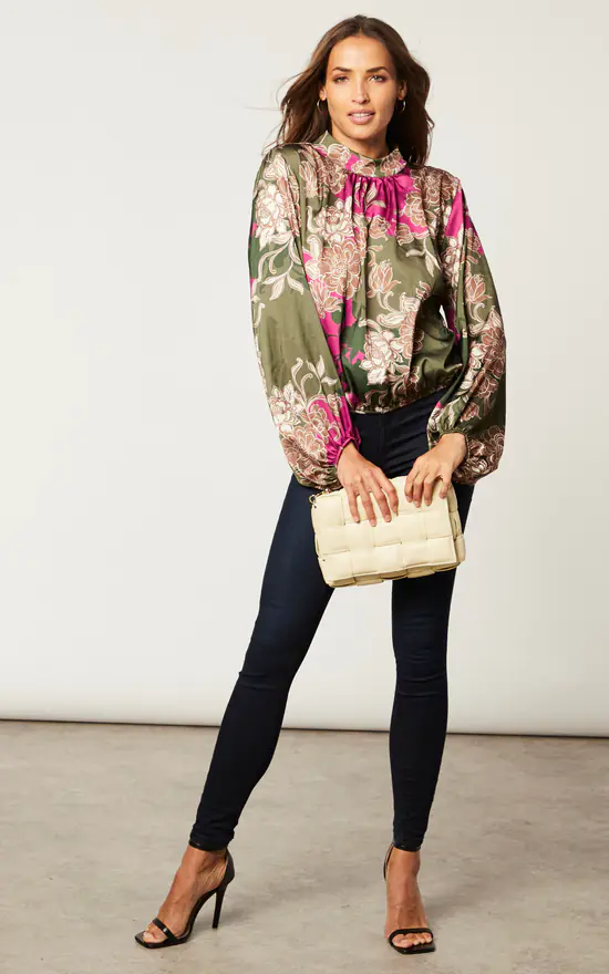 A little bit of florals over here, a little bit of puffiness on the sleeves, a little bit elasticity on the seems, a little bit of Blue Vanilla is all you need! Paired with black jeans and short heel sandals, dance your way into a party with this satin blouse, and enjoy a fun evening out having cocktails with friends.