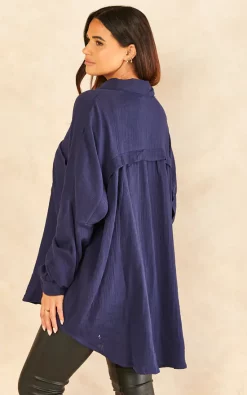 Ladies, the ultimate must have item in your closet – a smart shirt! Made with 100% cotton for some extra comfort, a chest pocket, and an oversized design, this navy shirt ideal for anywhere you would like to go. Tuck in this shirt into a pair of high waisted belted trousers and complete with stilettos, for a great professional look, or swap the trousers for a pair of straight leg jeans and white sneakers, for a smart-casual look ideal for a city break.