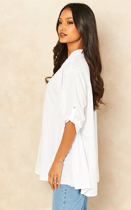 Exclusively By Blue Vanilla. A must have for all year round! Throw on our Taya white blouse with a paid of smart trousers and loafers for a classic workwear look. Or go casual with a pair of jeans and white trainers!