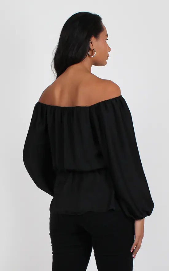 It has blouson three quarter length sleeves and looks great over flared jeans or a fitted skirt.