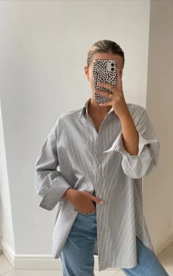 Effortless style made easy! This oversized striped shirt can be worn out or tucked in and takes casual chic to a whole new level.