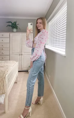 Feel super cute in our bespoke hand drawn printed Pink Blossom Top! Its straight neckline and long sleeves perfectly juxtapose the backless design held together by delicate laced spaghetti straps to hug your waist for a secure fit. Add your favourite pair of blue denim jeans and cute heels or alternatively swap the blue jeans for black and add a leather jacket for a more casual look.