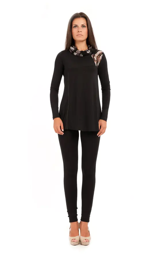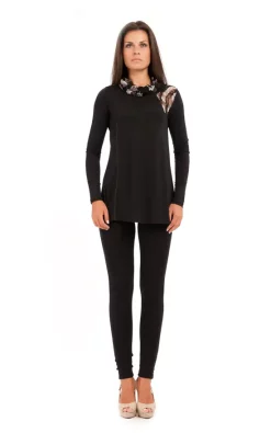 Light and breezy, this silhouette skimming lace detail top from Conquista will undoubtedly become a firm favourite this season. Easy to wear and cut in a relaxed A line, this flattering piece will look great with tonal leggings and knee length boots. Asymmetrical seams add an extra dimension. Model shown is 178cm and is wearing size 36/S.
