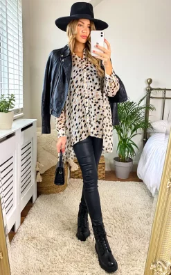 Perfect paired with PU leggings or coated jeans, tucked in or out. Great for working from home or dress up for date night in!