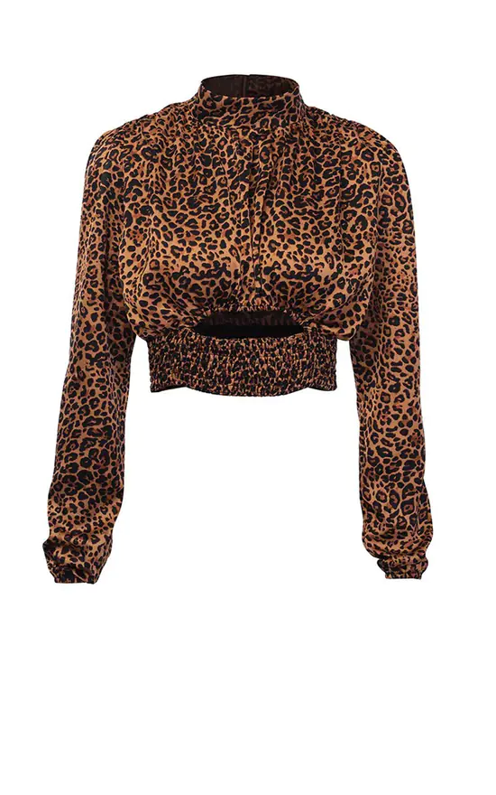 Stunning leopard print top make the boys and girls run wild for you. Ruched high neck and a keyhole cutout front. This beautiful, easy to wear top is leopard print fabric, team it with black jeans or lace skirt perfect for any occasion.