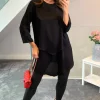 Long Sleeves Silver Trim Simple Style T Shirt Top In Black