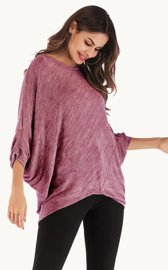 Made from a soft stretch jersey fabric and featuring batwing style sleeves and a boat shape neckline. An extremely easy to wear casual top that is both glamourous and comfortable.
