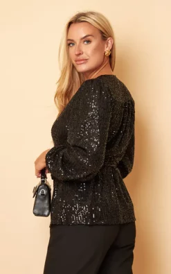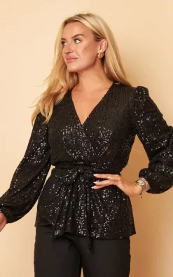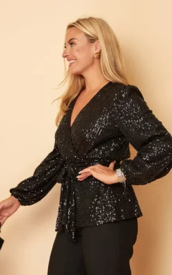 Get party ready this season with our Gabriella Black Sequin Long Sleeve Top! Featuring a wrap over neckline, balloon sleeves & gorgeous black sequin design. Pair with jeans & heels to complete the look.