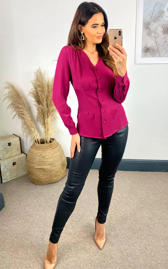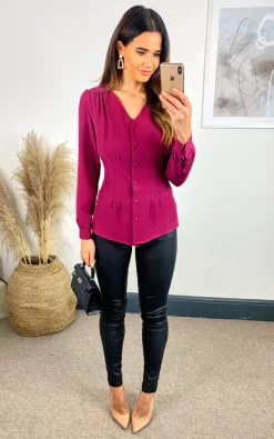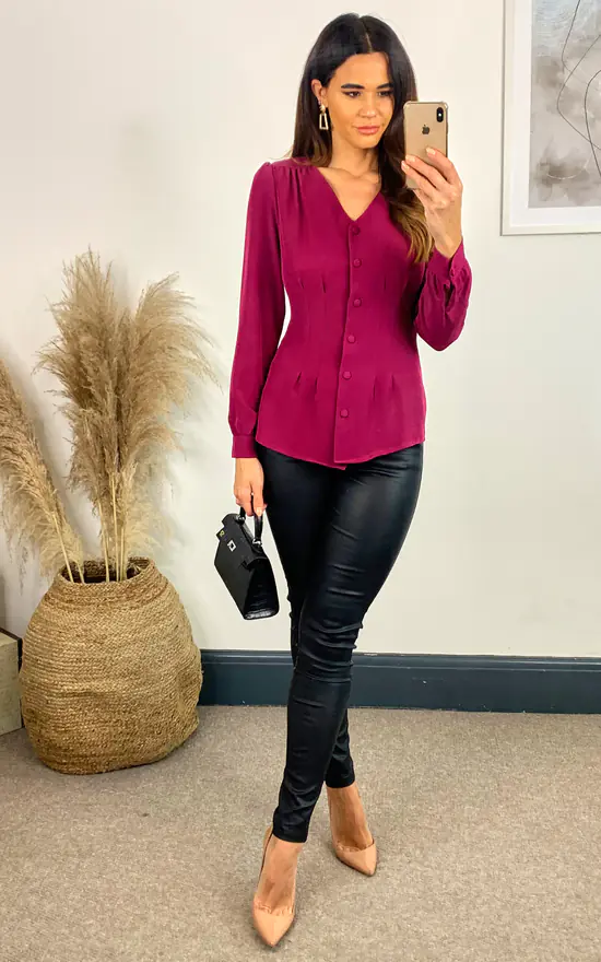 Our newest addition to our autumn collection, the Nadine Blouse, is perfect for staying chic this winter. It is made with a super soft material with enough stretch to keep you comfortable during the colder days. The gathering and pleated detail lift this piece and give it that feminine flare, while the full length sleeves and fitted silhouette make it perfect for day or night. Pair this style with a skirt or trousers for the ultimate autumn/winter look. Also available in Navy!