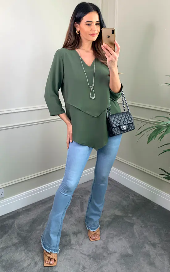Perfect for your office styele with frill details and you can combine it with skinny jeans to catch a feminine look!