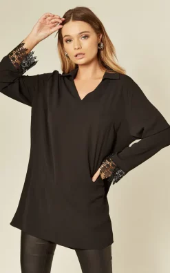 Black Oversized Top with Lace Detail