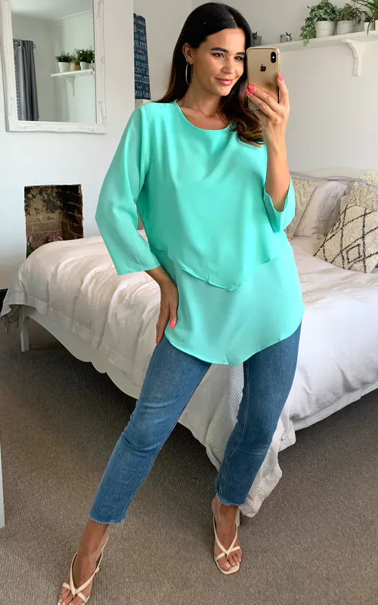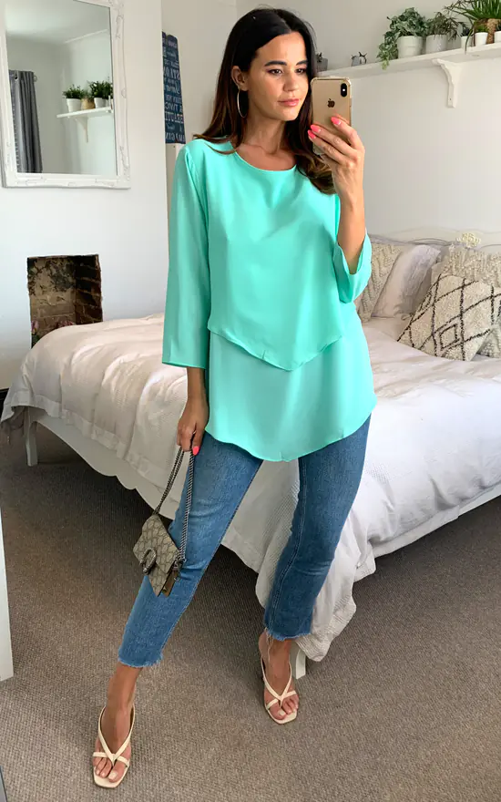 3/4 Sleeve Relaxed Layered Top is perfect for a Autumn outfit night or day!