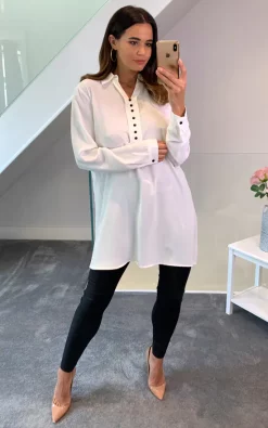 You can feel very comfy with Tunic Shirt with Button Details in White piece in long days!