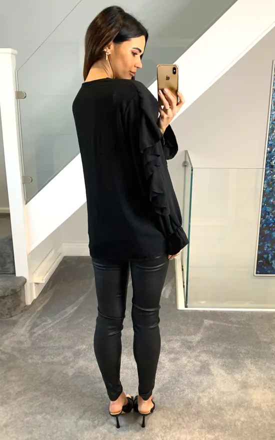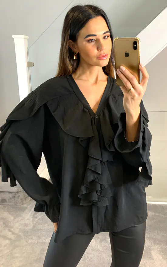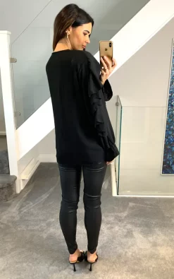 Oversized Top with Frilled Front in Red creates a charming aura around you. Perfect for Autumn/Winter nights! It’s lovely comfy oversized fit, it’ll keep you comfortable wherever you go: from lounging on the sofa to going out for coffee.